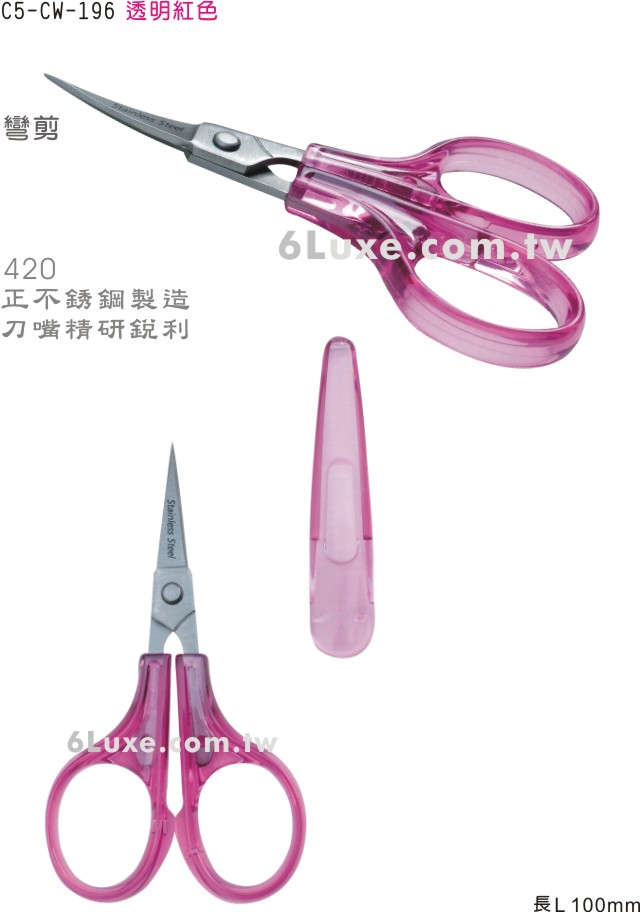 高級小剪刀(彎剪)剪刀,指甲剪/工作剪/小果樹剪 (透明 藍/紅) C5-CW-196