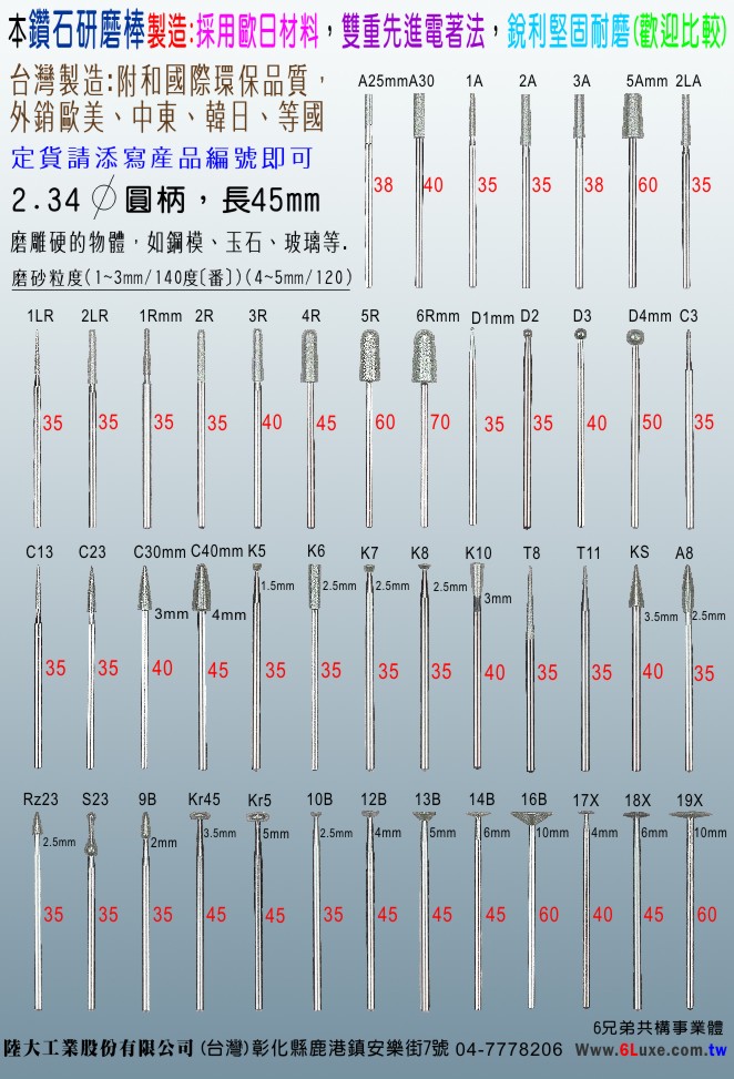 2.34mm鑽石研磨棒,台灣製造 24-5R