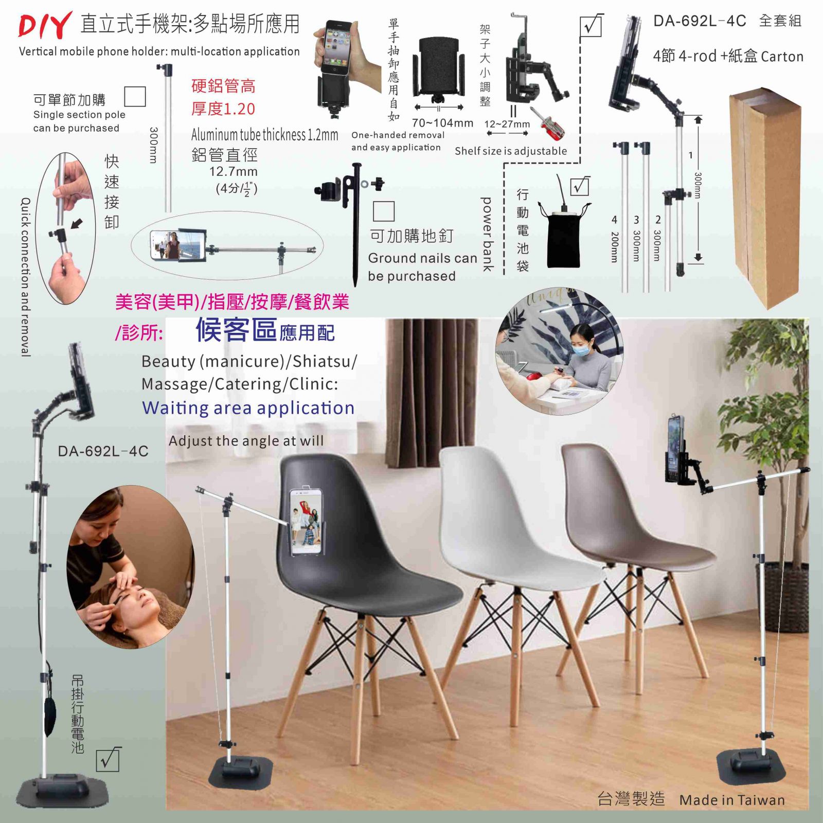 (多場所通用架)主架4節+基座+行動電源應用吊掛袋+紙盒裝 鋁製外銷高級型620.-(30天/特價398)
