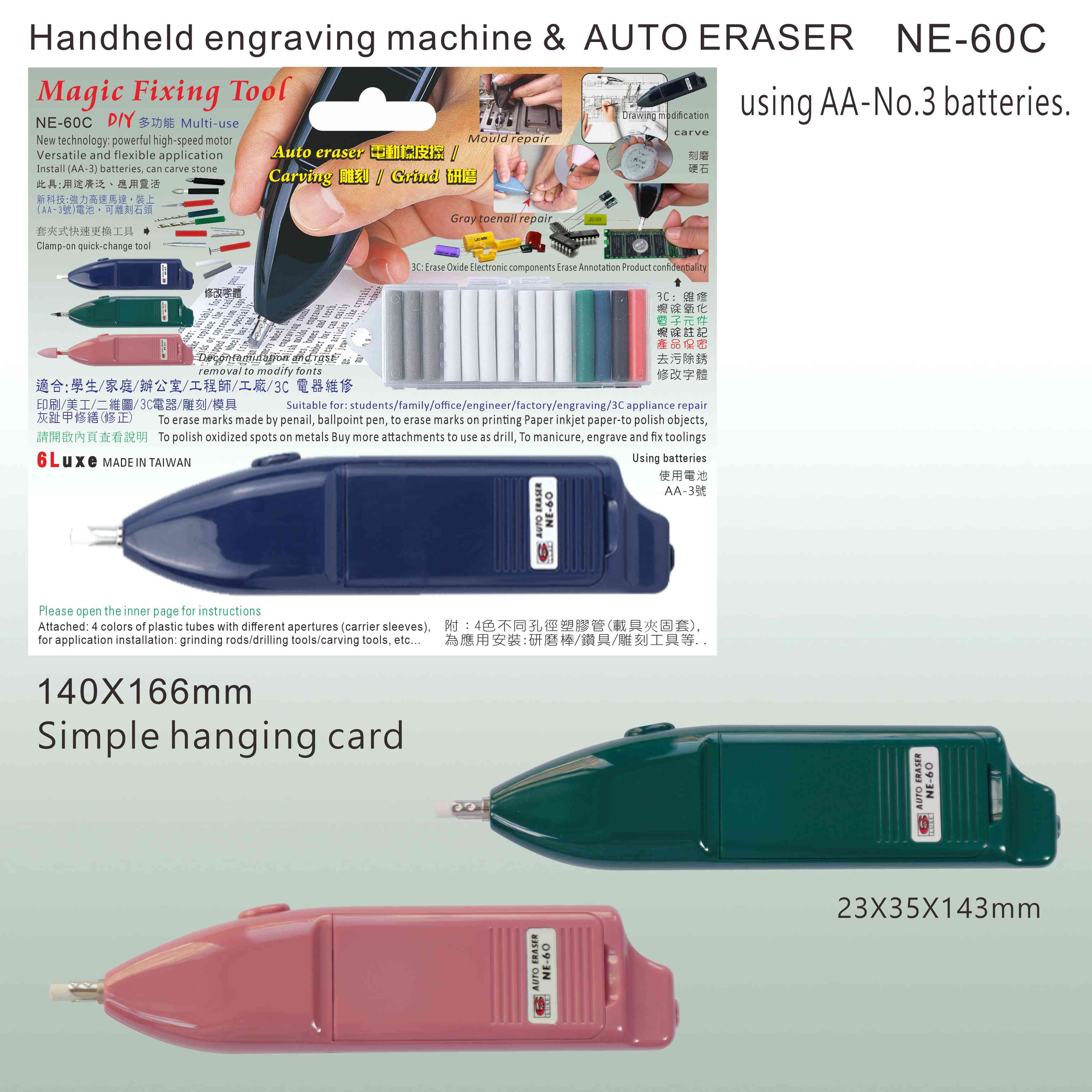(NE-60 魔法工具)是一種多用途和多功能的工具,可以激發學生、藝術家和社會工作者靈活思考和工作應用(用於手動培訓)。此工具的使用是靈活的。它配備了特殊的電機(節能,堅固,精確製造),可廣泛應用於雕刻和研磨,適用;模具維修,機器/電機維護修繕,擦拭和校正文字和紙上線條,美甲修飾等…各個行業。 ..